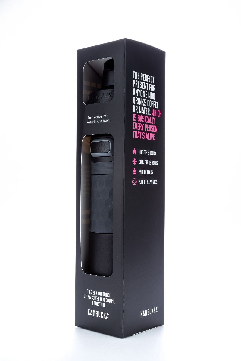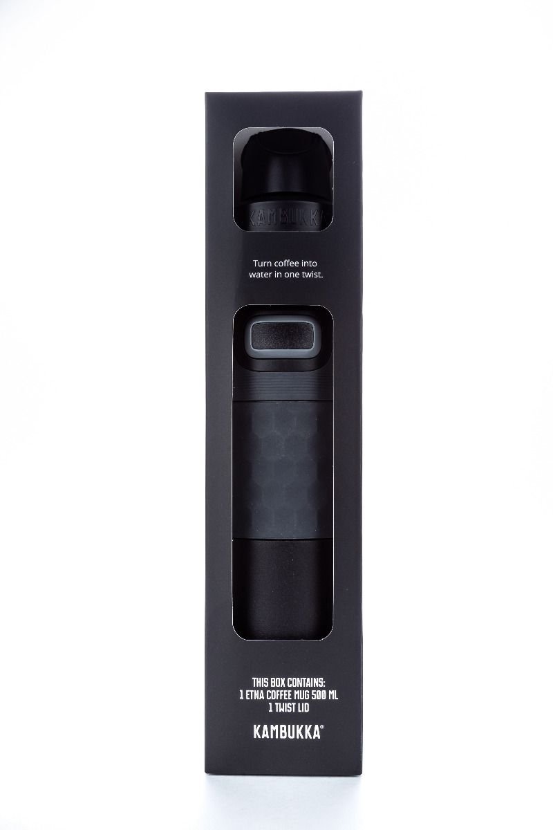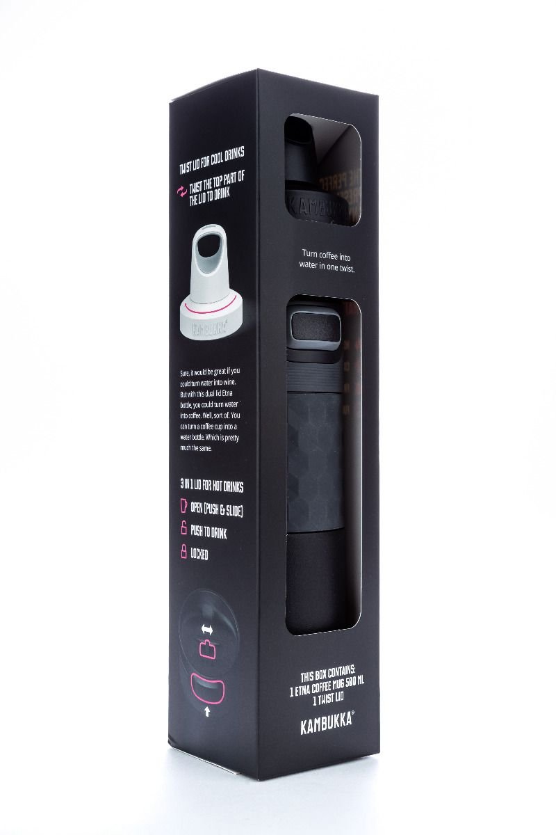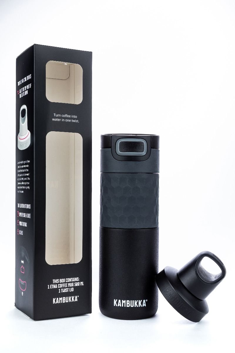 Термочаша от неръждаема стомана Kambukka Etna-Twist Grip с термокапак 3 в 1 Snapclean® и капак 2 в 1 Twist, 500 мл, Black Steel, кутия