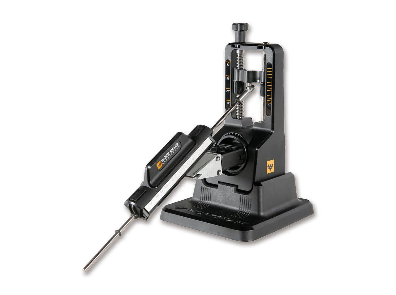 Уредът за заточване на ножове Work Sharp Precision Adjust Knife Sharpener е ръчен уред за заточване на ножове с регулируем ъгъл и три различни абразивни елемента за високопрецизни резултати при заточване. Ъгълът на заточване може удобно да се регулира от 15° до 30° на стъпки от 1° за оптимално заточване на всеки нож. Камъкът за заточване Tri-Brasive съдържа диамантени пластини с размер на зърното 320 и 600 за бързо заточване и керамичен камък за фино заточване. Иновативната затягаща конструкция заключва ножа бързо и сигурно. Корпусът осигурява стабилна и здрава основа за заточване върху масата или кухненския плот.