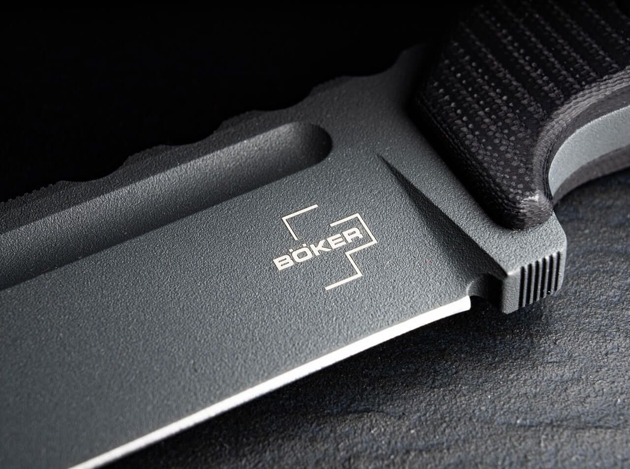 Дирк Хофмайстер от Midgards Messer е вдъхновен от скандинавското изкуство на ковачеството и създава изключително стабилния Boker Plus Little Dvalin Tanto. Той впечатлява с компактния си размер и солидното острие Tanto от стомана D2, което е покрито с тъмносиво титаниево покритие и има подчертан жлеб. Вдлъбнатините на гърба на острието осигуряват безопасна опора за палеца при трудни задачи с рязане. Добре оформената и частично назъбена дръжка от композит G10 винаги лежи сигурно в ръката. Включва отвор за ремък, клипс за колан, който може да демонтирате по желание и висококачествена кания от Kydex.
