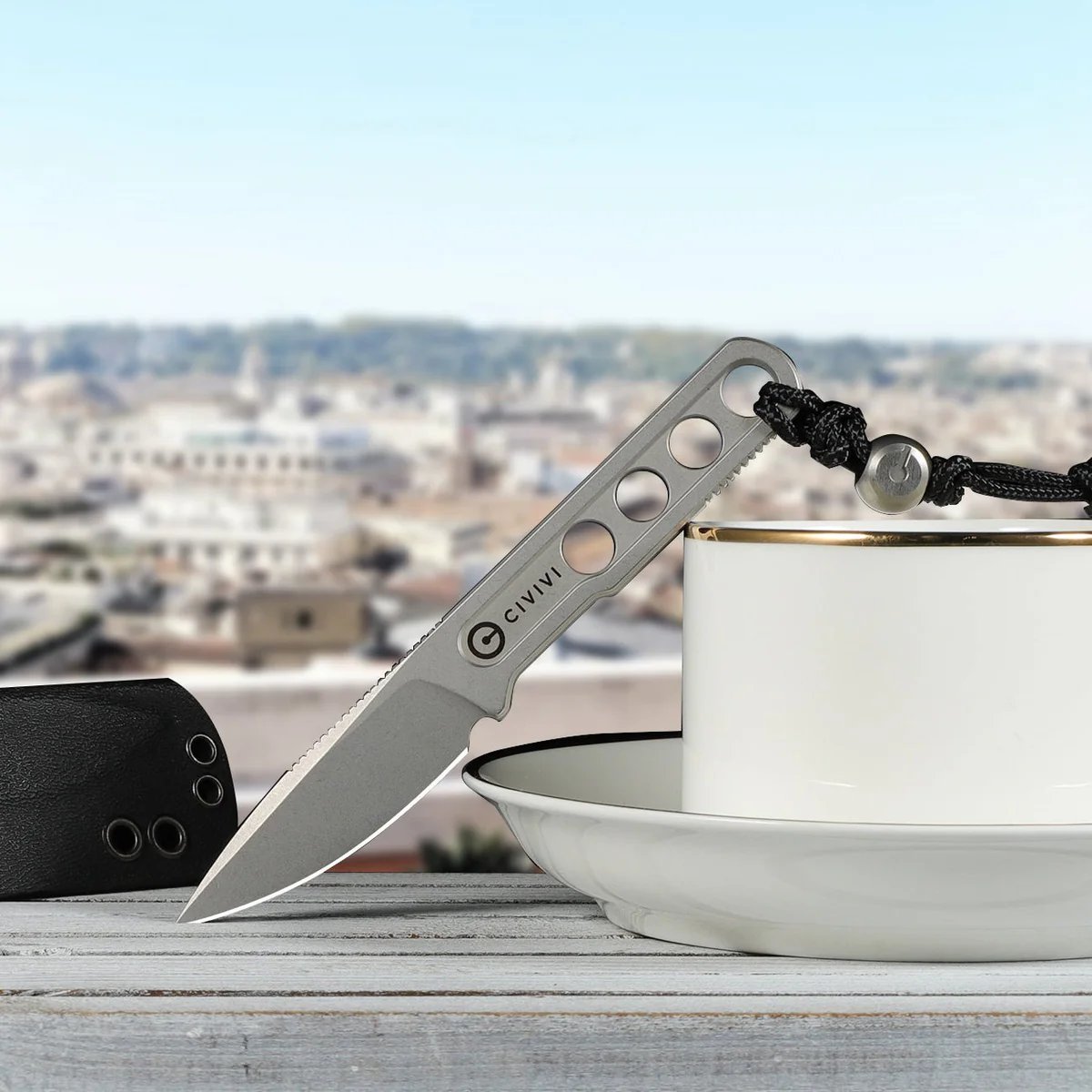 Тегло на ножа (с найлонов ремък и верижката): 28,7 гр