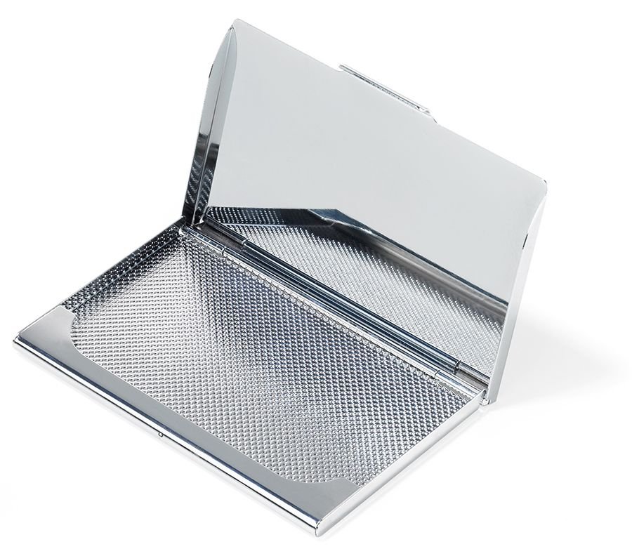 Метален визитник TROIKA, метал, покритие хром, дизайнерски стикер "CUBUS . За около 11 визитки.