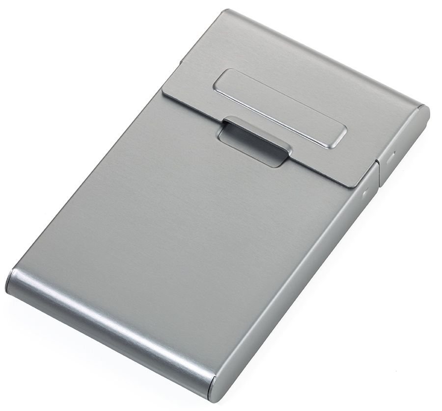 Метален визитник TROIKA, алуминий, капаче с ролково отваряне, антрацит, за около 10 визитки.