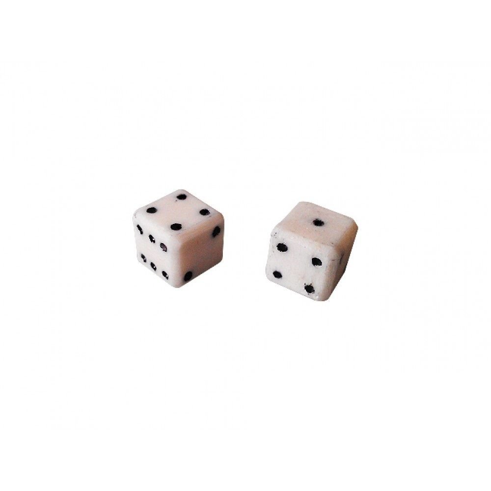 Комплектът включва: зарчета от кост 2 броя с размери 6.4 мм.