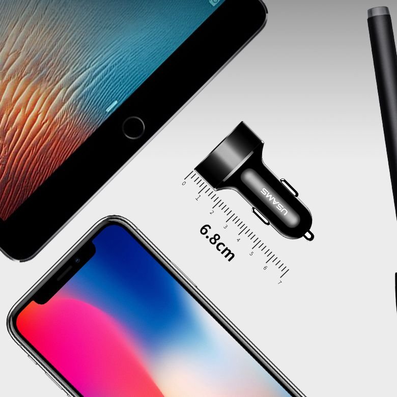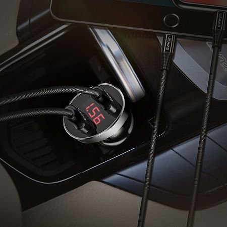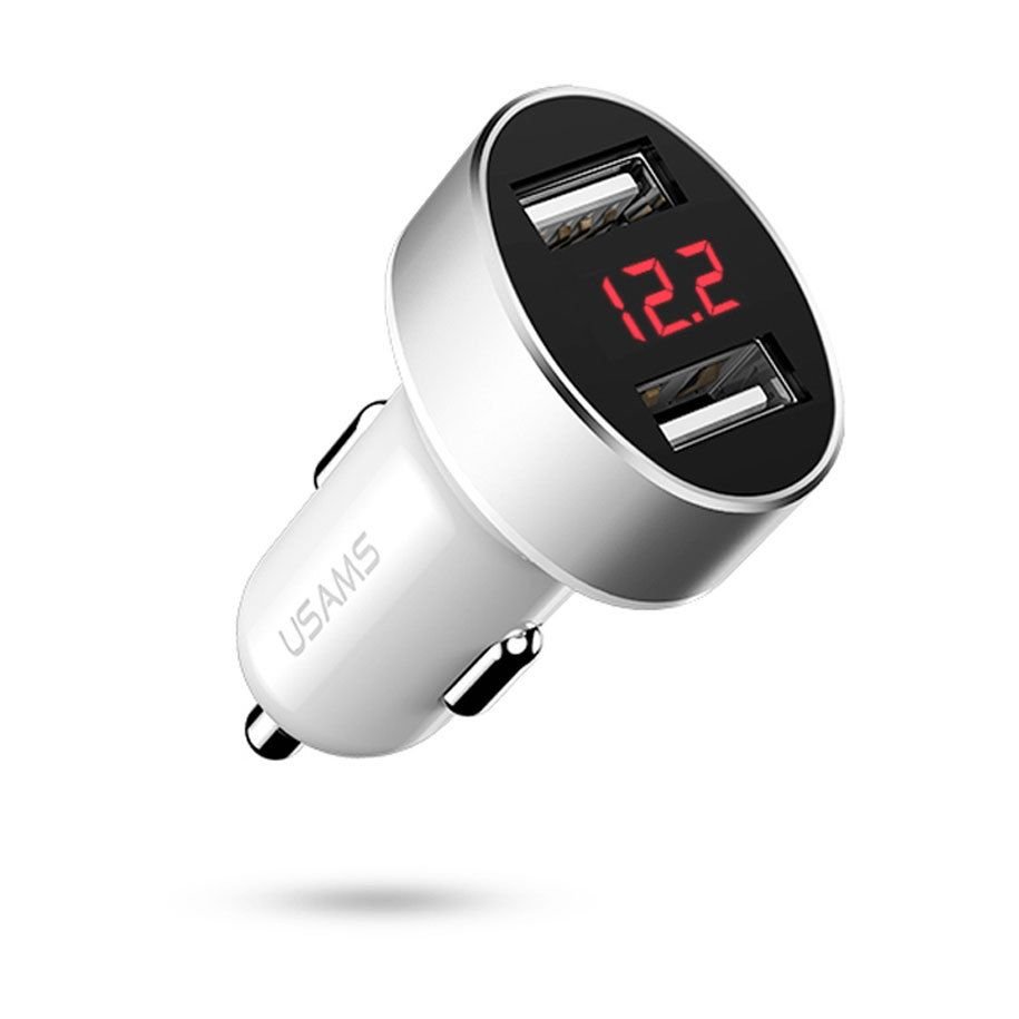 Автомобилно двойно зарядно 12V Usams C1 2.1A, Digital Display, бяло.